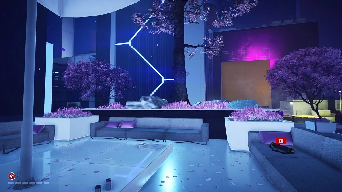 Следуйте в сад с водопадом и розовыми деревьями. Затем вам нужно добраться до вентиляции, что сверху. Пройдите в другую часть комнаты и заберитесь в вентиляционный ход. Доберитесь на верхний балкон и возьмите секретную сумку, которая лежит в конце балкона.