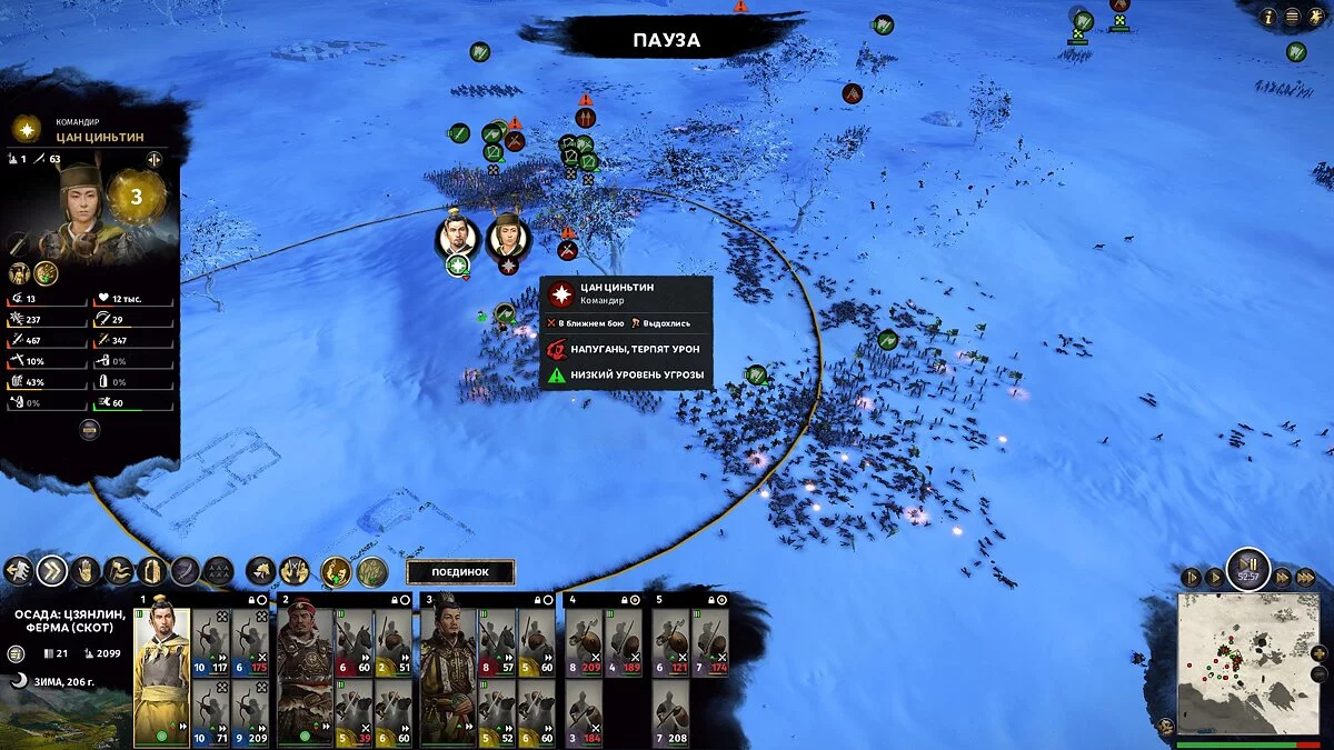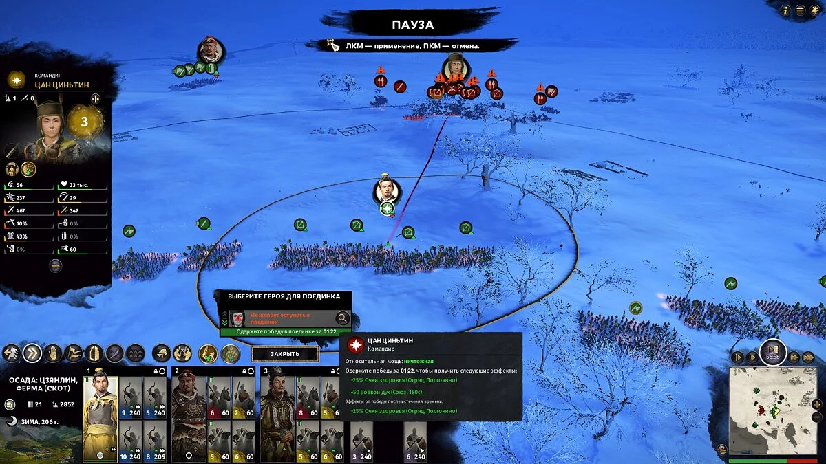 Но даже если ваш персонаж заведомо слабее, есть способ победить в дуэли. Для этого нужно по ходу боя нанести цели достаточно большой урон, чтобы сбить его запасы здоровья — ваши солдаты могут биться с вражеским полководцем успешно, если окружат его в несколько слоев, и даже могут быстро его завалить.