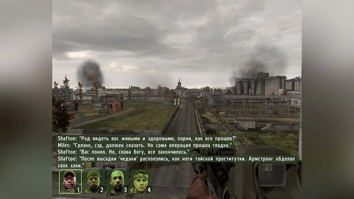 Теперь осталось уничтожить центр связи. Сделать это нужно до шести утра, пока не началась высадка основных сил. Найти его не сложно, а уничтожить еще легче, для этого у вас есть C4. Я рекомендую использовать именно взрывчатку, потому что при вызове артудара могут пострадать гражданские. Теперь, когда центр связи уничтожен, нужно отходить. Но если у вас есть лазерный маркер, вам предложат захватить наблюдательный пункт боевиков и скоординировать ракетный удар по трем целям — танку, шилке и дому. В любом случае в конце мы отступаем к точке эвакуации, после чего миссия заканчивается.