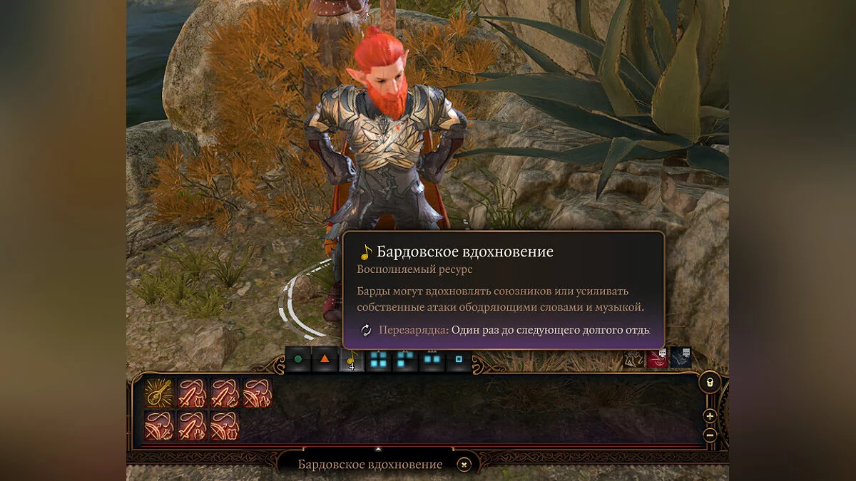 Например, Лаэзель может получить вдохновение, убив пятерых врагов за ход, а Актер вдохновится хорошим выступлением барда. Всего можно накопить 5 очков Вдохновения. Лишние заряды превратятся в очки опыта. Посмотреть текущие заряды можно на вкладке «Вдохновение» (P).