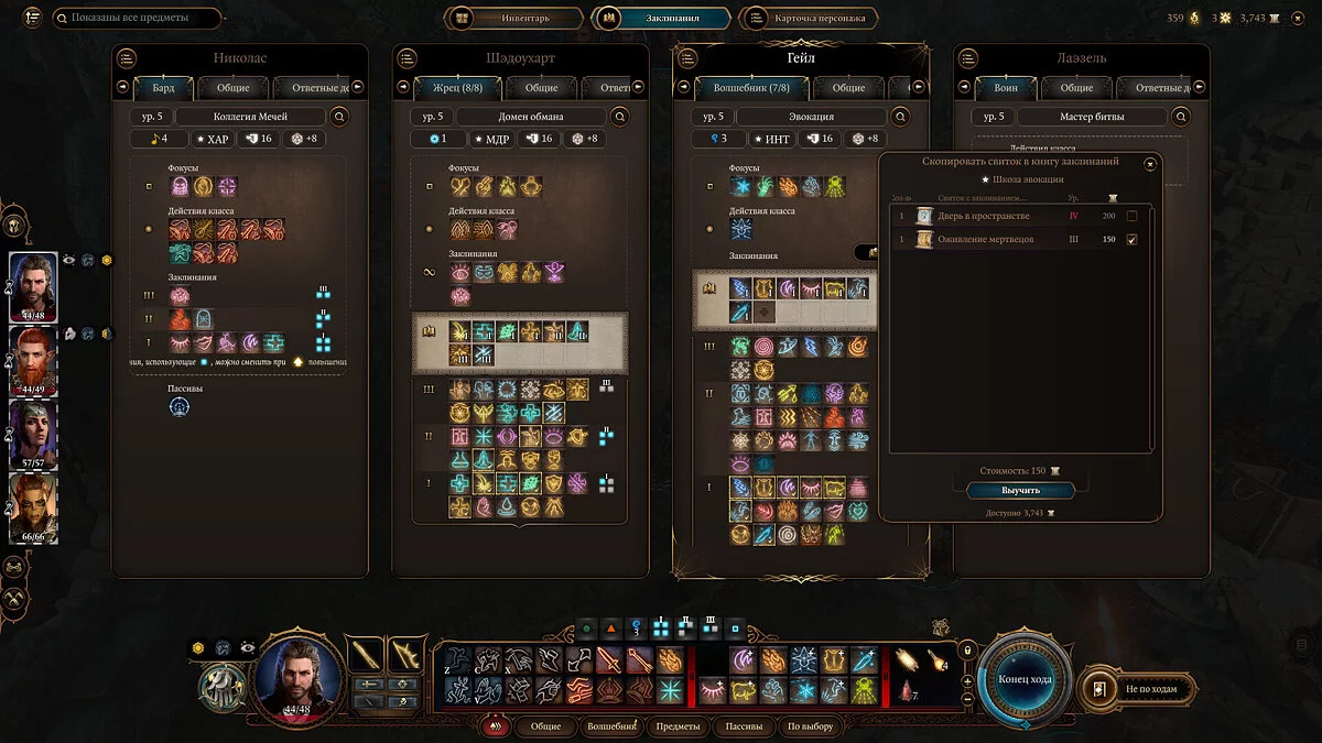 Если вы видите множество заклинаний, но не можете выучить их, сделайте активным персонажа-волшебника, откройте инвентарь и перейдите на вкладку «Заклинания». В таком случае в списке будут лишь те чары, которые еще неизвестны персонажу.