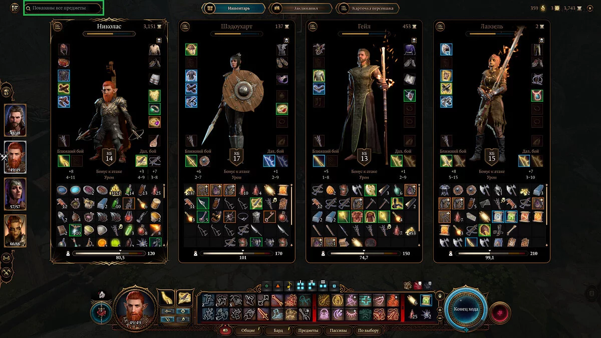 Ещё одна неочевидная механика, доступная игроку. Если вы хотите вылечить отряд зельями или дать ему невосприимчивость к огню, не обязательно тратить сразу четыре склянки.