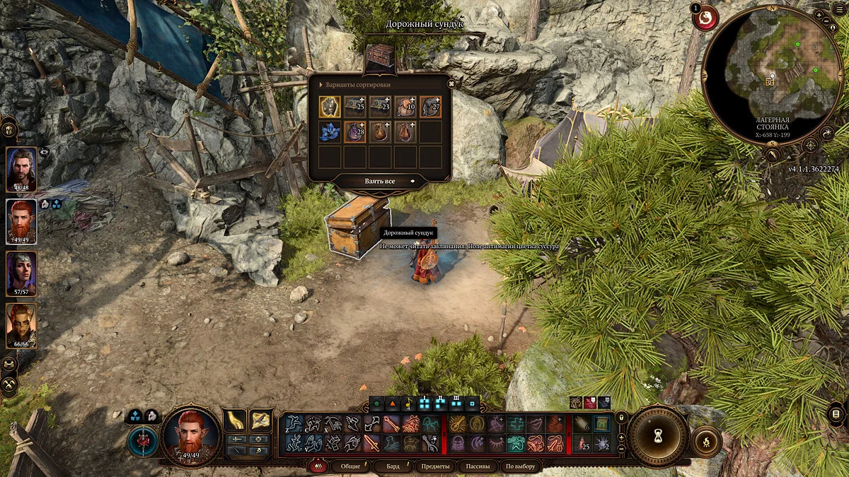 Также на помощь приходит лагерный сундук, который не имеет ограничений по весу или количеству ячеек. Внутрь вы можете сложить множество кошельков и сумок, распределив по ним редкие вещи, припасы и снаряжение.