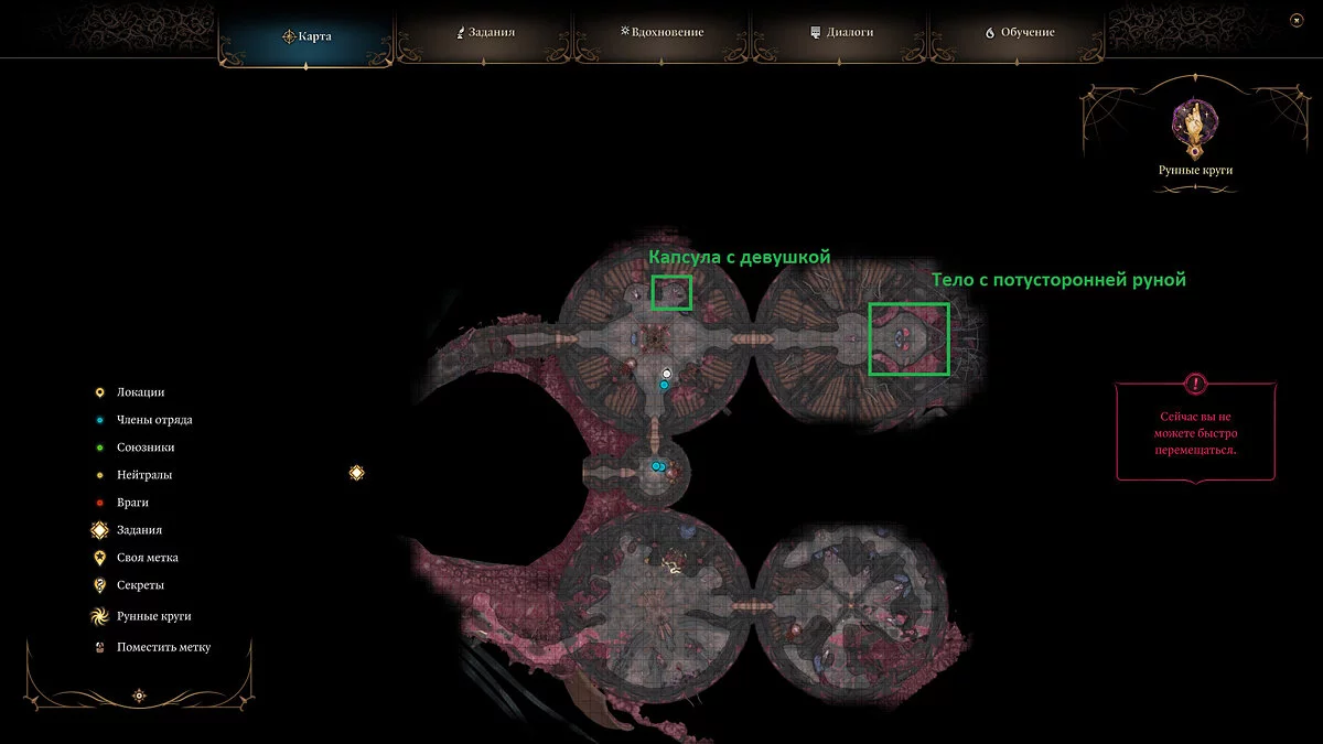 Чтобы открыть капсулу и спасти девушку, необходимо использовать стоящий рядом терминал. Камень доступа к нему вы найдете в помещении выше, он называется «Потусторонняя руна» и лежит на теле у балкона.