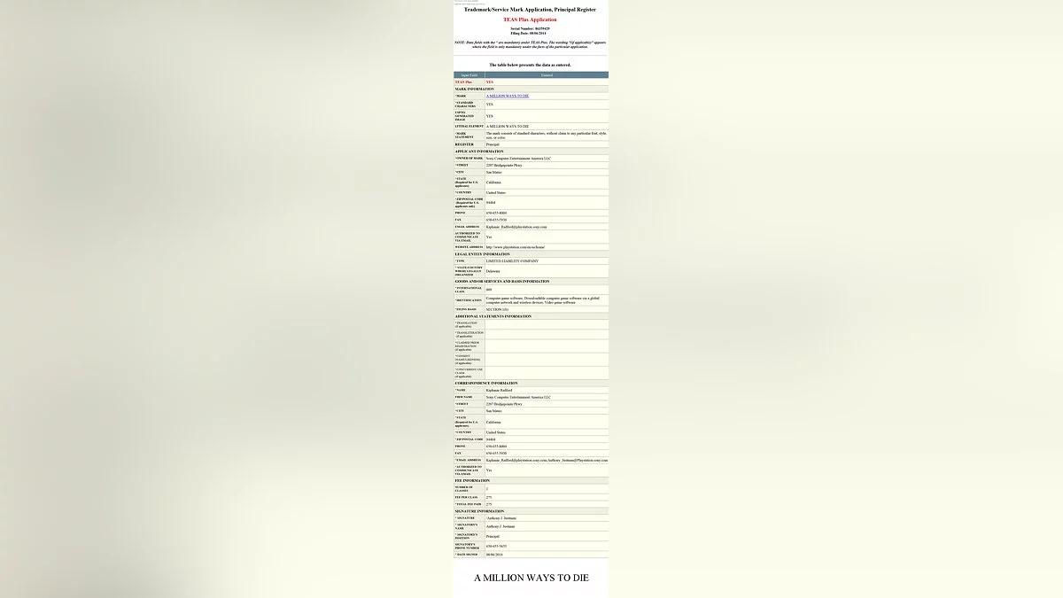 Интересные новости от компании Sony. Сегодня стало известно, что издатель зарегистрировал торговую марку A Million Ways To Die. Вкупе с публикацией еще одного тизера хоррора для Gamescom 2014, появляются интересные мысли. Похоже, мы знаем название этой игры.