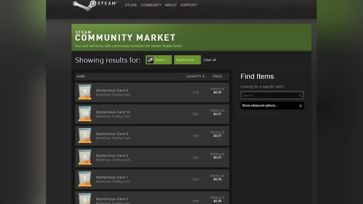 Впервые о карточках стало известно благодаря пользователю портала NeoGAF. Сейчас около сотни уже выставлено на продажу, и пользователи Steam могут начать собирать наборы.