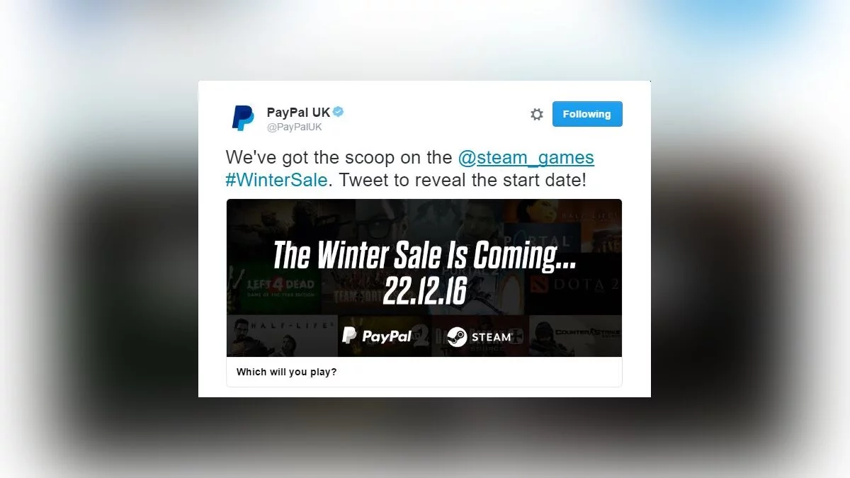 PayPal UK подтвердила дату начала зимней распродажи в Steam