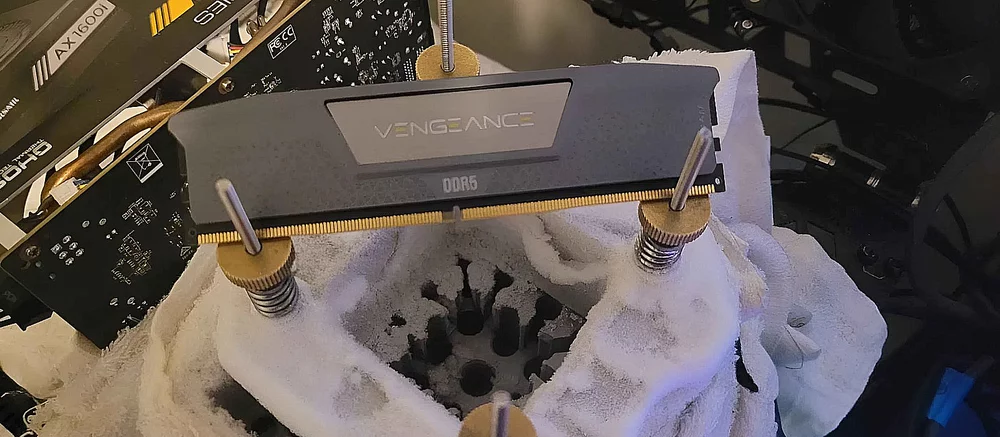Железо и технологии 23 сентября 2025SaltyCroissant с командой единомышленников установил новый мировой рекорд разгона оперативной памяти. Используя экстремальное охлаждение жидким азотом, они добились от стандартной DDR5 скорости, которая ранее казалась фантастической.