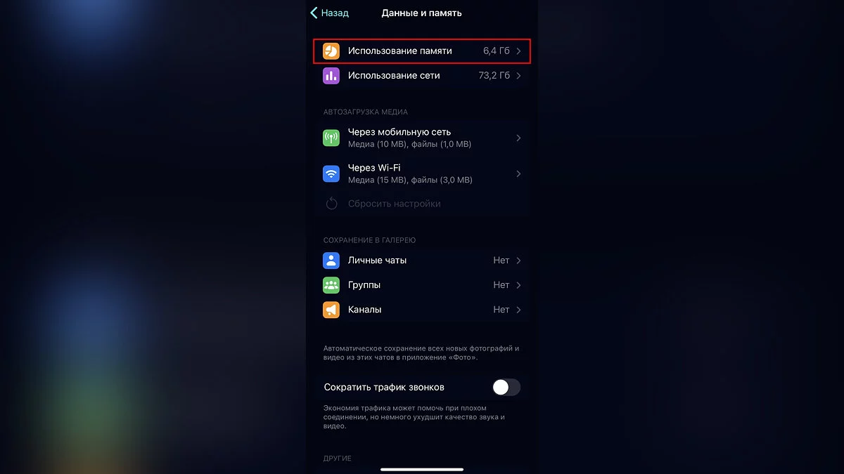 Здесь всё просто: зайдите в «Настройки», затем — «Данные и память». Там необходимо найти вкладку «Использование памяти» и нажать на большую кнопку «Очистить кэш». Зачастую весь этот процесс занимает от одной до пяти минут.
