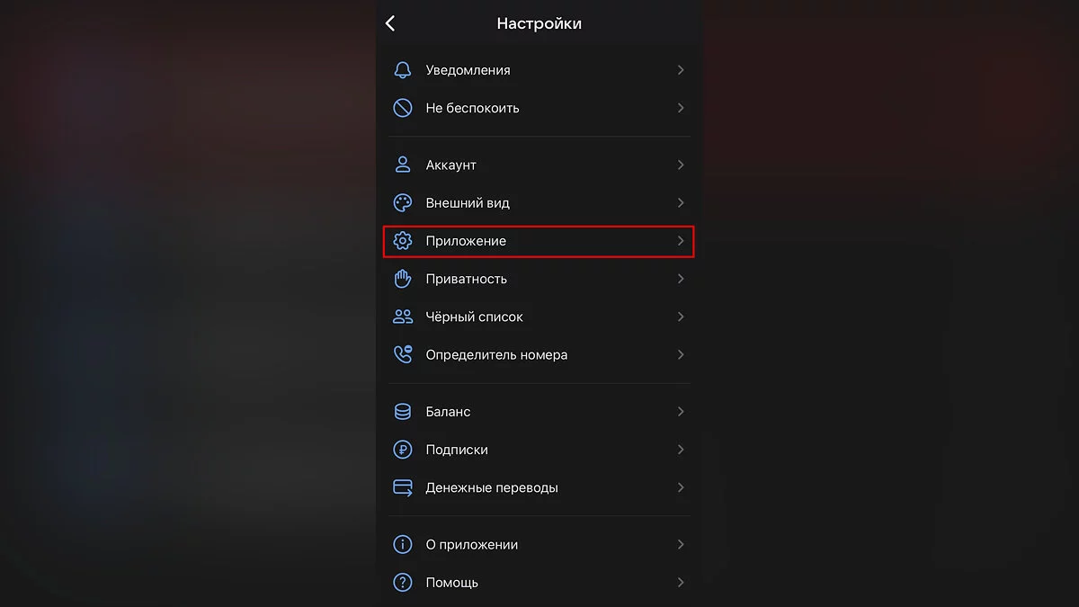 - Ищем раздел «Приложение»;