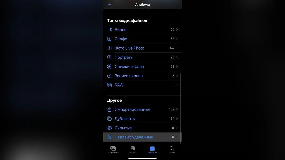 Зайдя в «Фото», пролистните вниз и увидите раздел «Дубликаты» и «Недавно удалённые». В первом хранятся фотографии и видео, которые дублируются на устройстве и которые можно спокойно удалить. В «Недавно удалённых» — все ваши удалённые фото и видео, этакая «Корзина» для пользователя iPhone. Дело в том, что этот раздел периодически забывают очищать сразу, а ведь он тоже занимает некоторую часть памяти устройства.