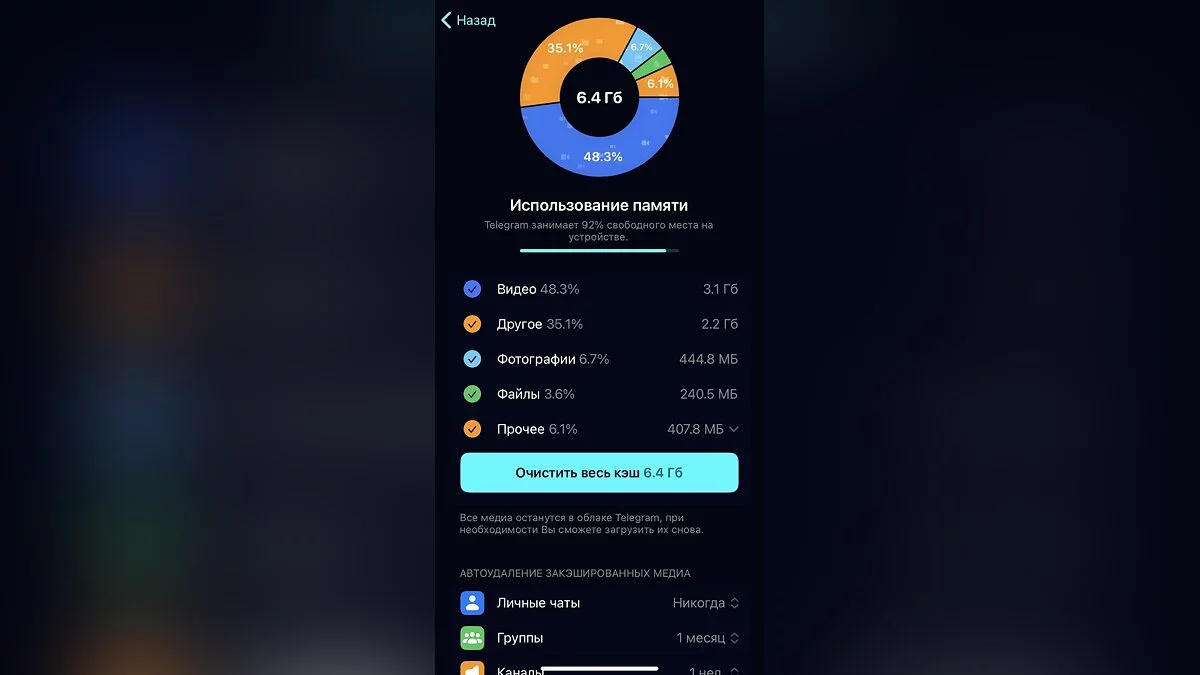 Как очистить кэш Telegram