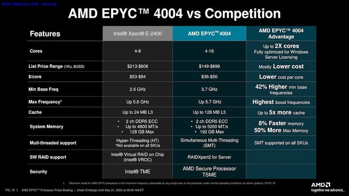 Линейка EPYC 4004, построенная на архитектуре Ryzen 7000, предназначена для компактных и энергоэффективных серверов начального уровня. Она дополняет более дорогие модели для периферийных вычислений, предлагая улучшенные характеристики и поддержку дополнительных функций.