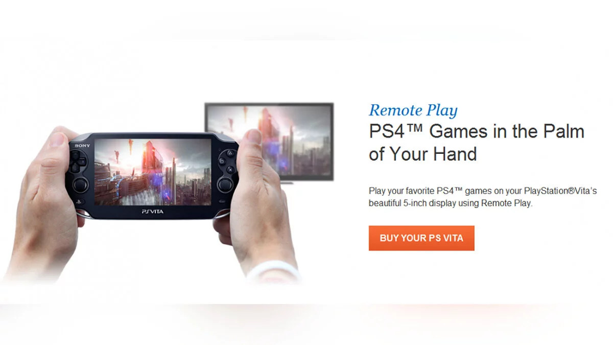 Вы можете сами в этом убедиться, пролистав указанный сайт на две трети вниз. «Играйте в свои любимые игры для PS4 на прекрасном пятидюймовом экране PlayStation Vita, используя функцию Remote Play», — гласит сообщение на сайте.
