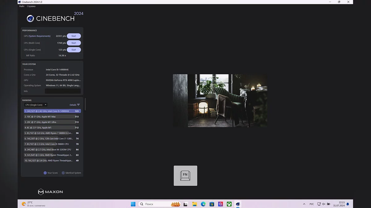 Ноутбук MSI Titan 18HX A14VIG мы проверили в синтетических тестах Cinebench R23, Cinebench 2024 и CrystalDiskMark. Результаты на скриншотах.
