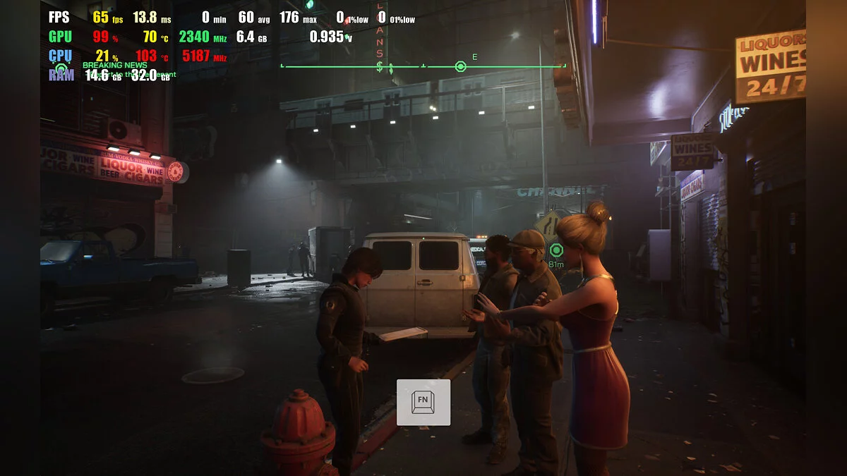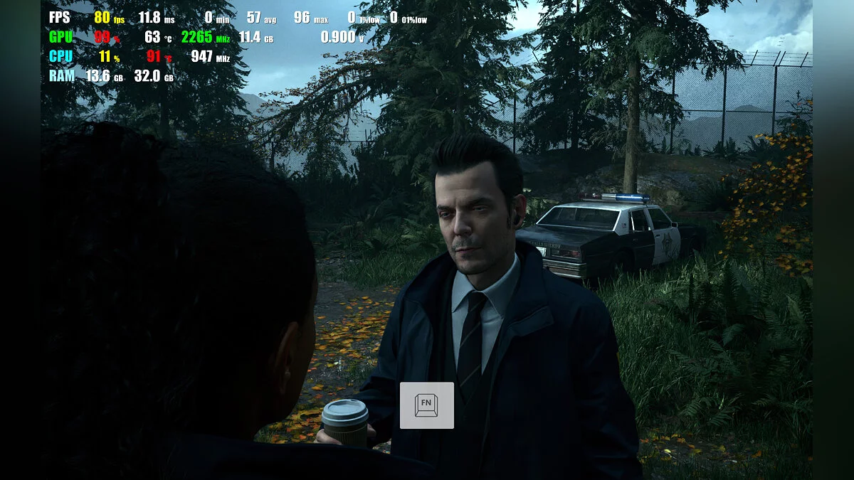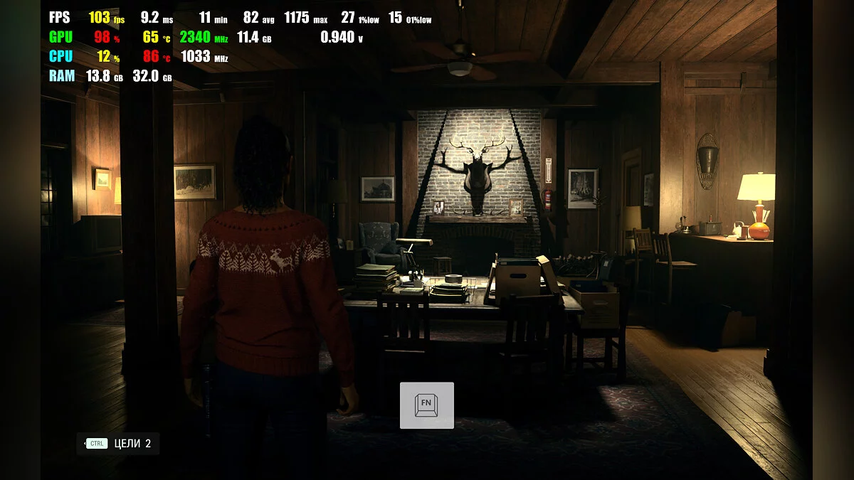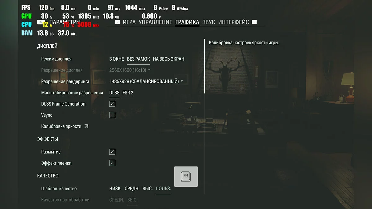Alan Wake 2. Самая требовательная игра из нашего сегодняшнего теста не показала играбельных FPS на максимальных настройках. Снизив разрешение и DLSS до «сбалансированных», можно получить 65-70 FPS. Чёткость картинки при этом снижается незначительно.