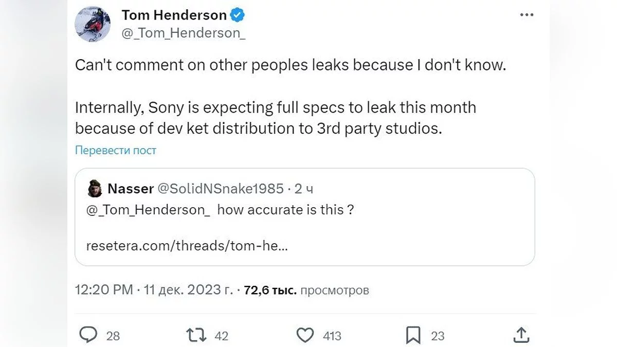 Оба источника сошлись в кодовом названии PS5 Pro — Trinity. Оно отражает три основных аспекта консоли: быстрое хранилище, ускоренная трассировка лучей и апскейл картинки. Хендерсон не подтвердил и не опровергнул информацию, однако рассказал, что Sony уже отправила девкиты разработчикам, поэтому слив может быть правдивым.