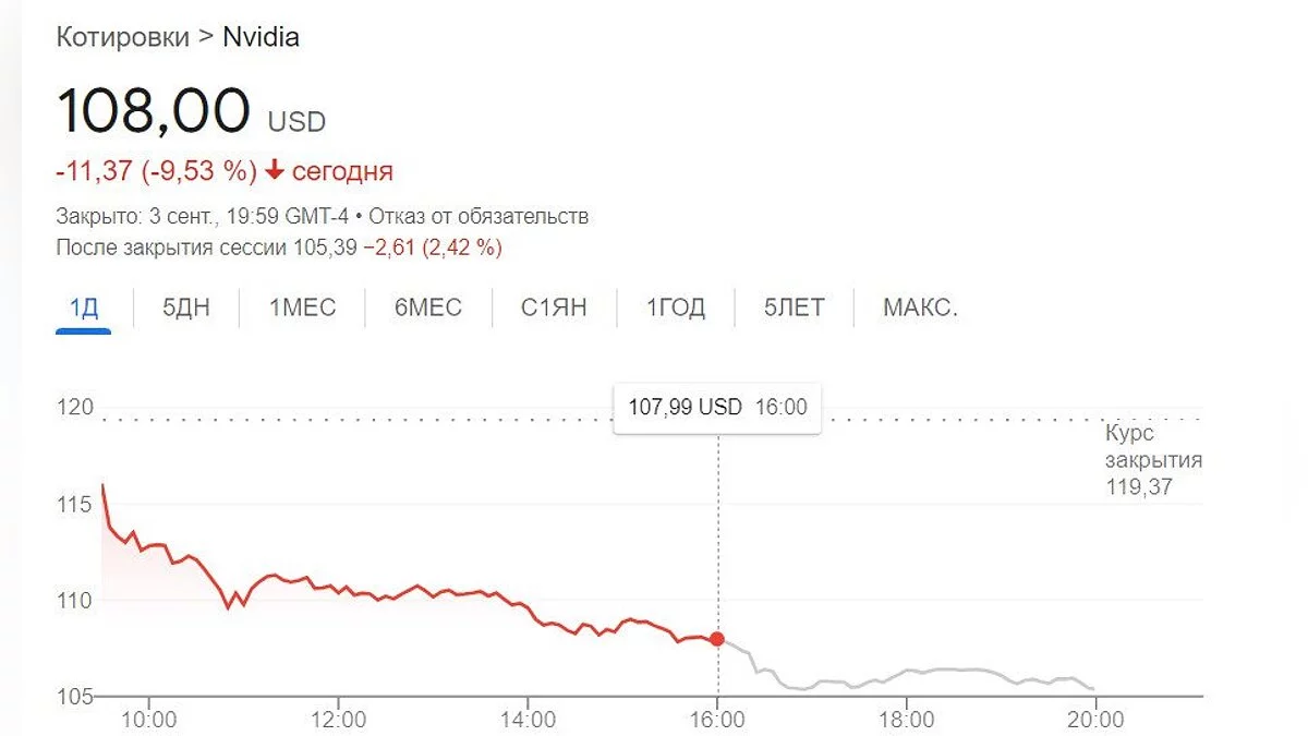 Акции NVIDIA упали и компания всего за день потеряла рекордные $278 млрд рыночной капитализации