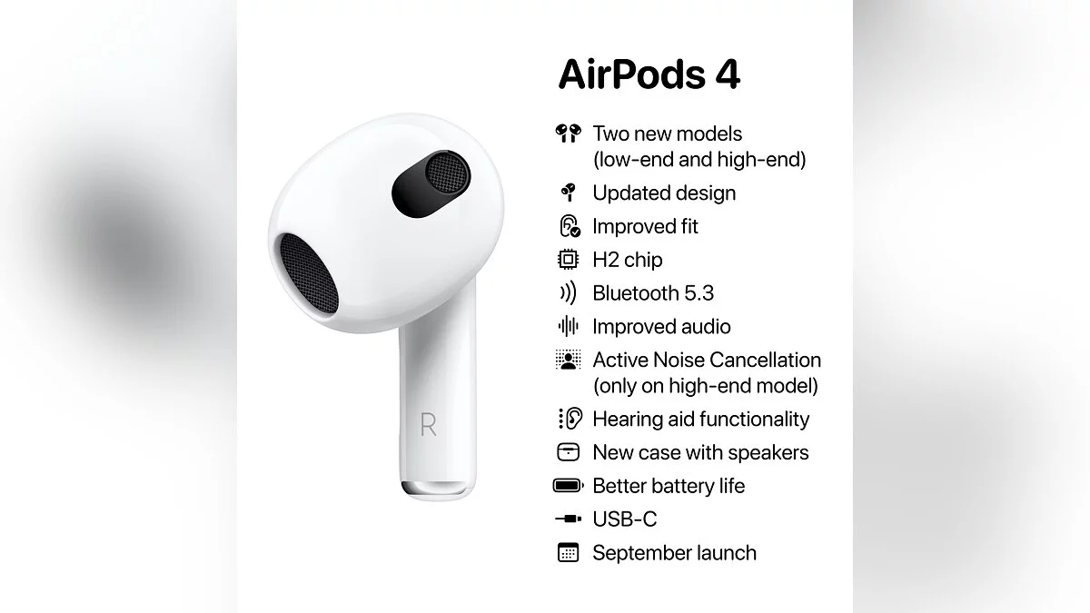 По слухам, на предстоящей презентации Apple, которая состоится 9 сентября, компания представит новую беспроводную гарнитуру AirPods 4. В сети уже выяснили, какие особенности может получить новинка.