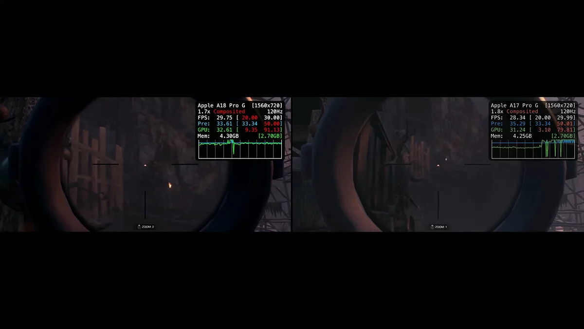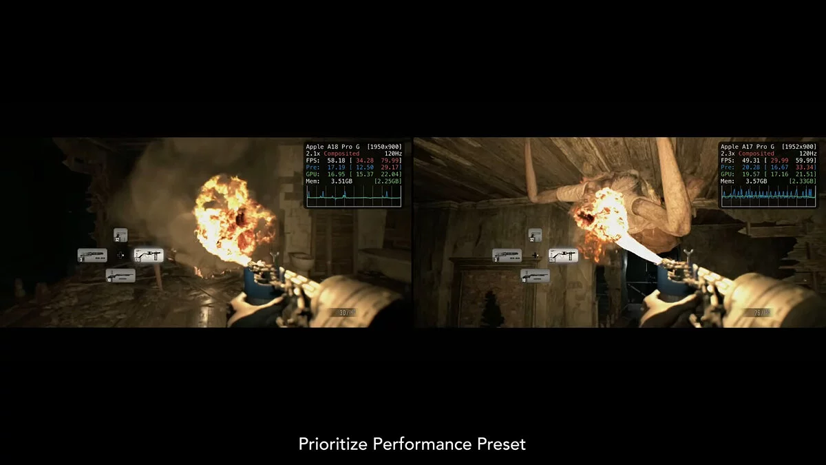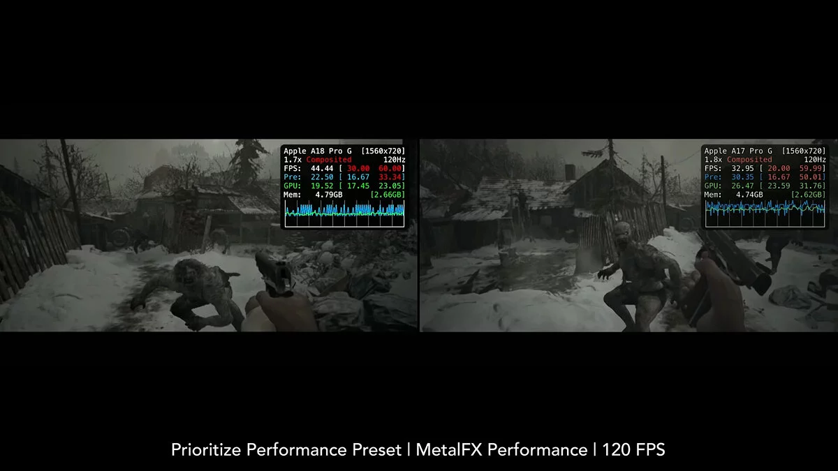 Как можно заметить, далеко не во всех играх производительность A18 Pro существенно отличается от A17 Pro. Наиболее заметной разница оказалась в Resident Evil Village и Resident Evil 7. В других играх частота кадров, как ни странно, примерно одинаковая.