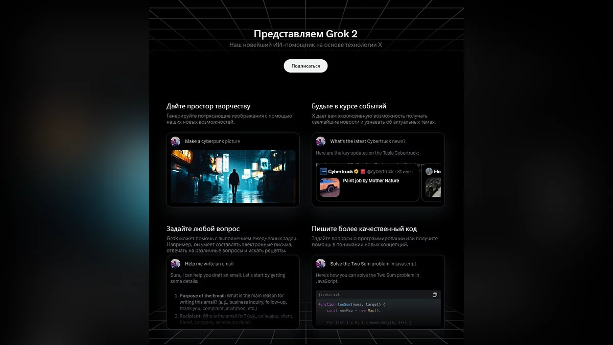 Особое внимание к нейросети начали проявлять после выхода бета-версии Grok 2. Новая модель отличилась полным отсутствием цензуры, из-за чего соцсеть быстро наводнили провокационные и просто стёбные изображения. Кроме того, ИИ способен генерировать тексты, писать код и правки к нему, а также анализировать данные.