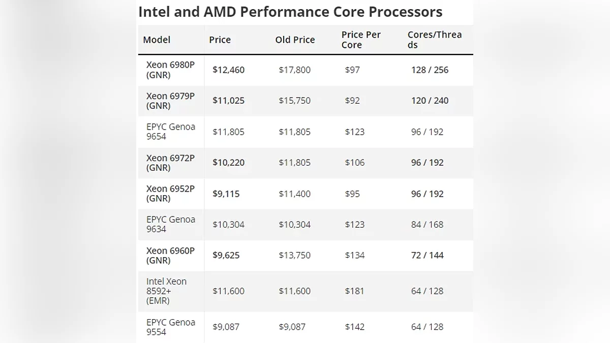 Согласно обновленным данным в базе Intel ARK, 128-ядерный Xeon 6980P подешевел на 30% — с