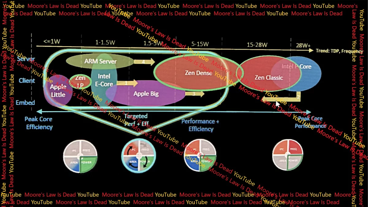 - Роль LP-ядер: Два маломощных ядра Zen 5 LP, встроенные в IOD, предназначены для фоновых задач. Согласно слайдам AMD, их потребление — менее 1 Вт на ядро, а IPC находится между Zen 3 и Zen 4. При частоте до 3,5 ГГц они способны ускорять многопоточные процессы без существенного роста энергозатрат.