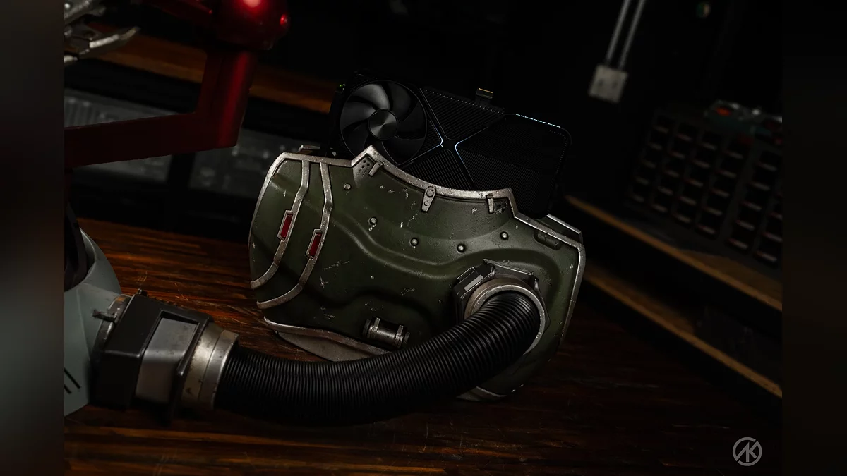 Компьютер из ада — NVIDIA показала крутой PC в стиле Doom: The Dark Ages с вращающимися лезвиями и RTX 5090