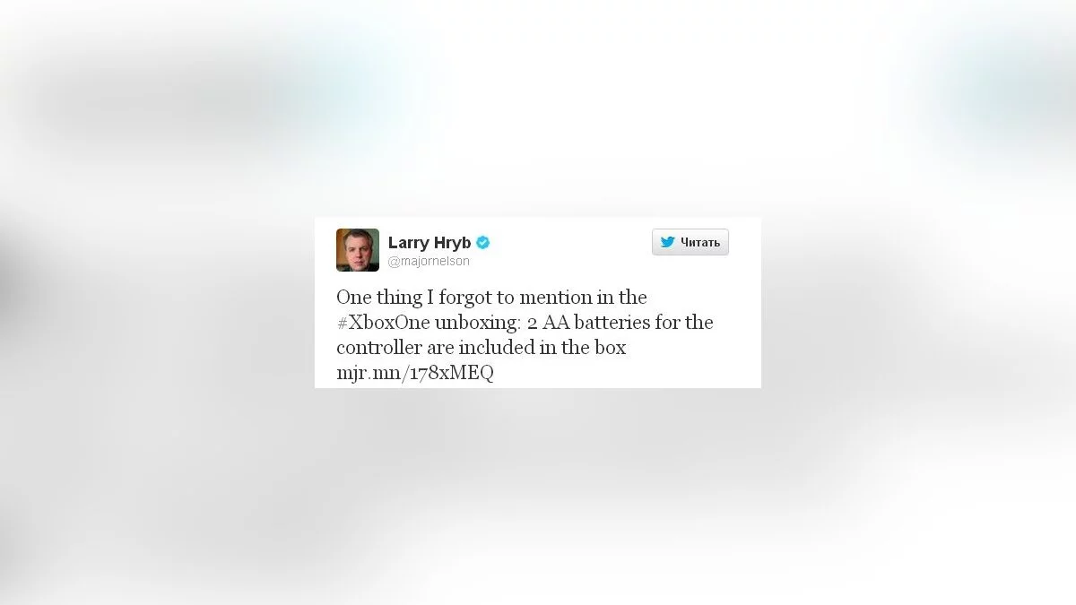 Правда он забыл упомянуть одну очень важную деталь. И вот недавно в своем Twitter Лари поделился с пользователями этой информацией. Она касается того, что в коробке с консолью, вы также найдете целых две пальчиковых батарейки для контроллера Xbox One! Он также очень раскаялся, что забыл упомянуть эту информацию, в процессе съемки видео.