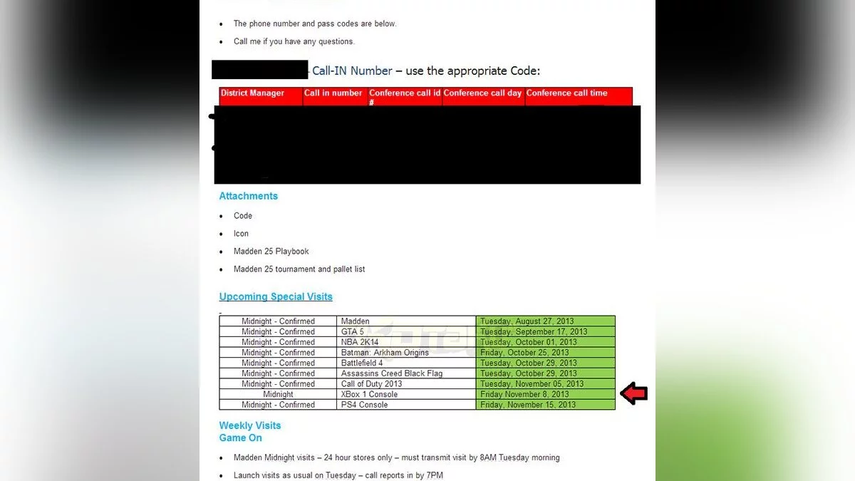 Один из сотрудников Walmart передал журналистам Kotaku скриншот, в котором указана точная дата поступления Xbox One в продажу. Как утверждает сам источник, он работает в маркетинговом отделе и напрямую получает информацию от производителей, в том числе и от Microsoft.