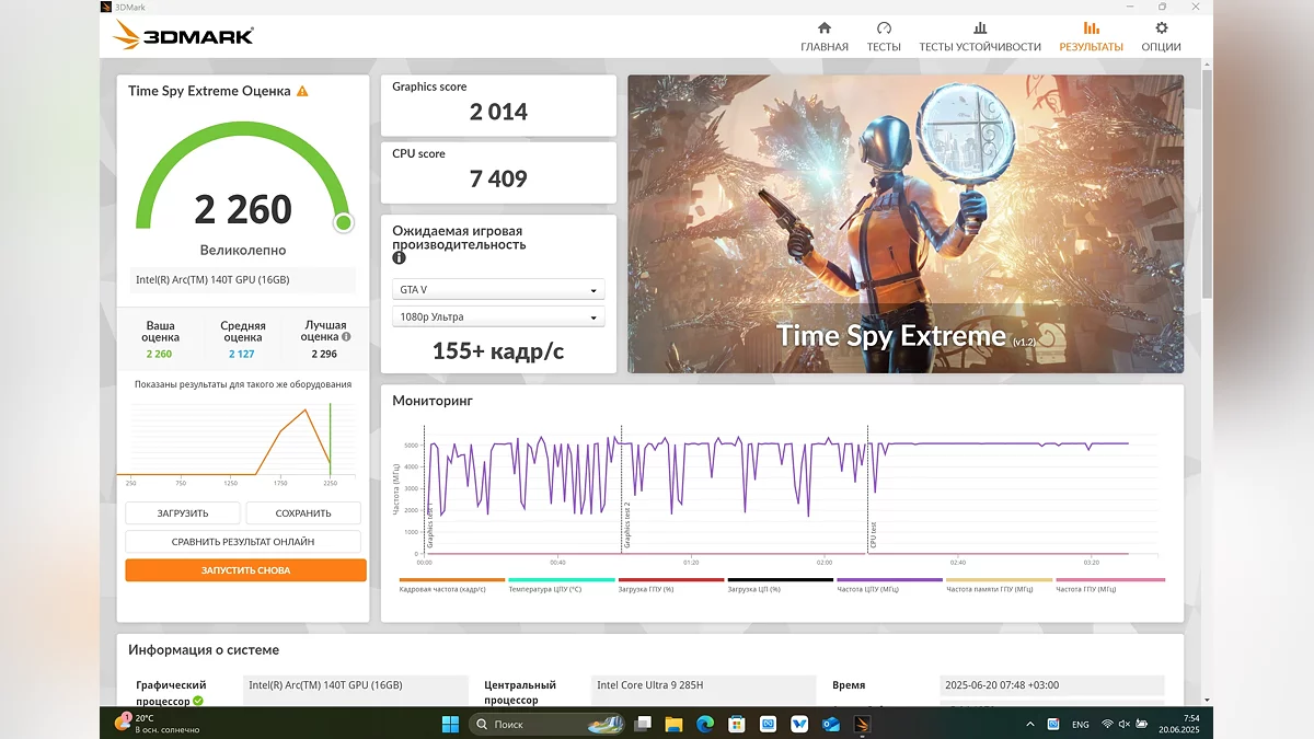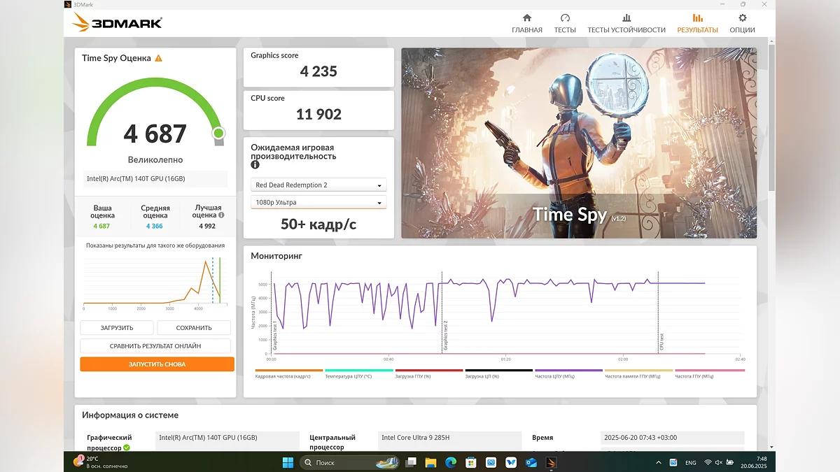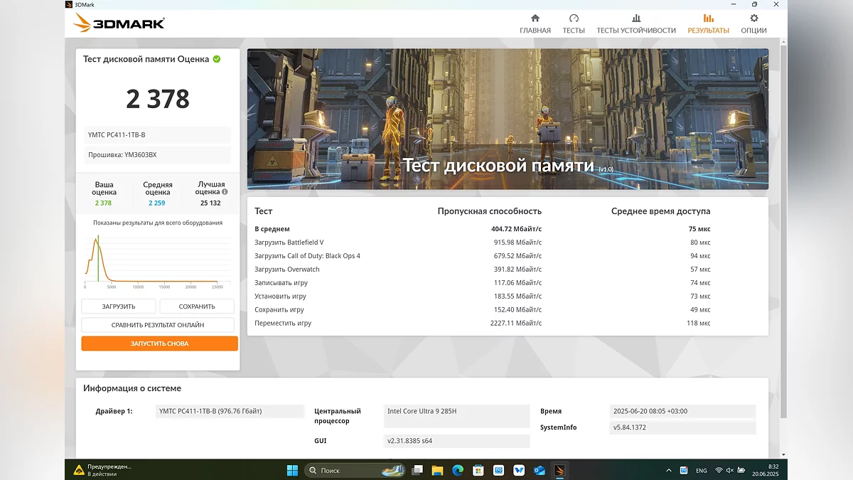 Также мы оценили мощность ноутбука в 3DMark: в тестах Time Spy, Time Spy Extreme, XeSS, CPU Profile и Storage Benchmark для проверки скорости загрузки игр на SSD.