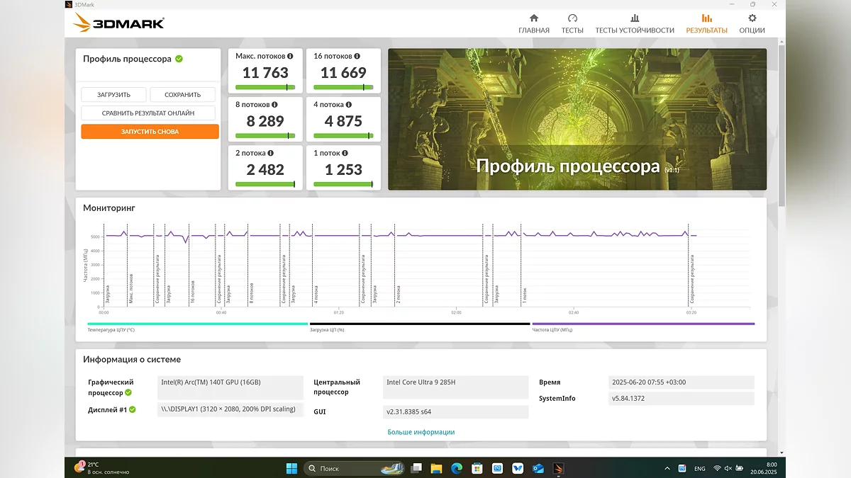 HONOR MagicBook Pro 14 мы проверили в синтетических тестах Cinebench R23, CPU-Z и CrystalDiskMark. Результаты на скриншотах.