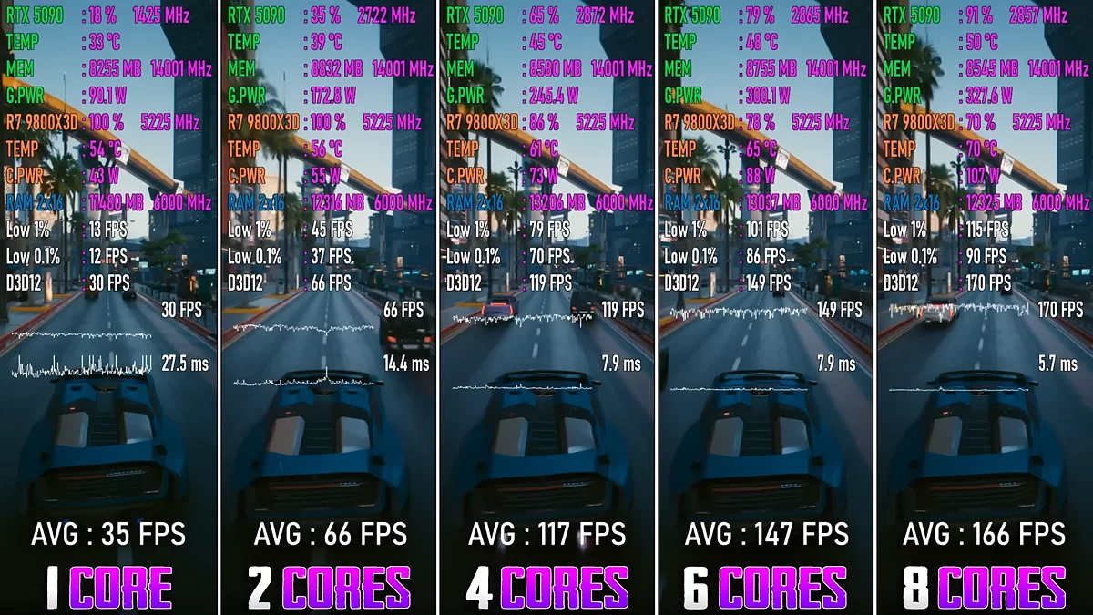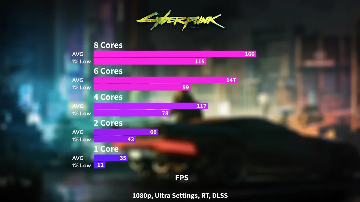 При этом нельзя сказать, что разницы между четырьмя и шестью ядрами нет вообще. В некоторых требовательных проектах, например, в Cyberpunk 2077, преимущество шестиядерного CPU может доходить до 25%. Однако в большинстве игр этот разрыв не превышает 9%, что не всегда оправдывает существенную разницу в цене.