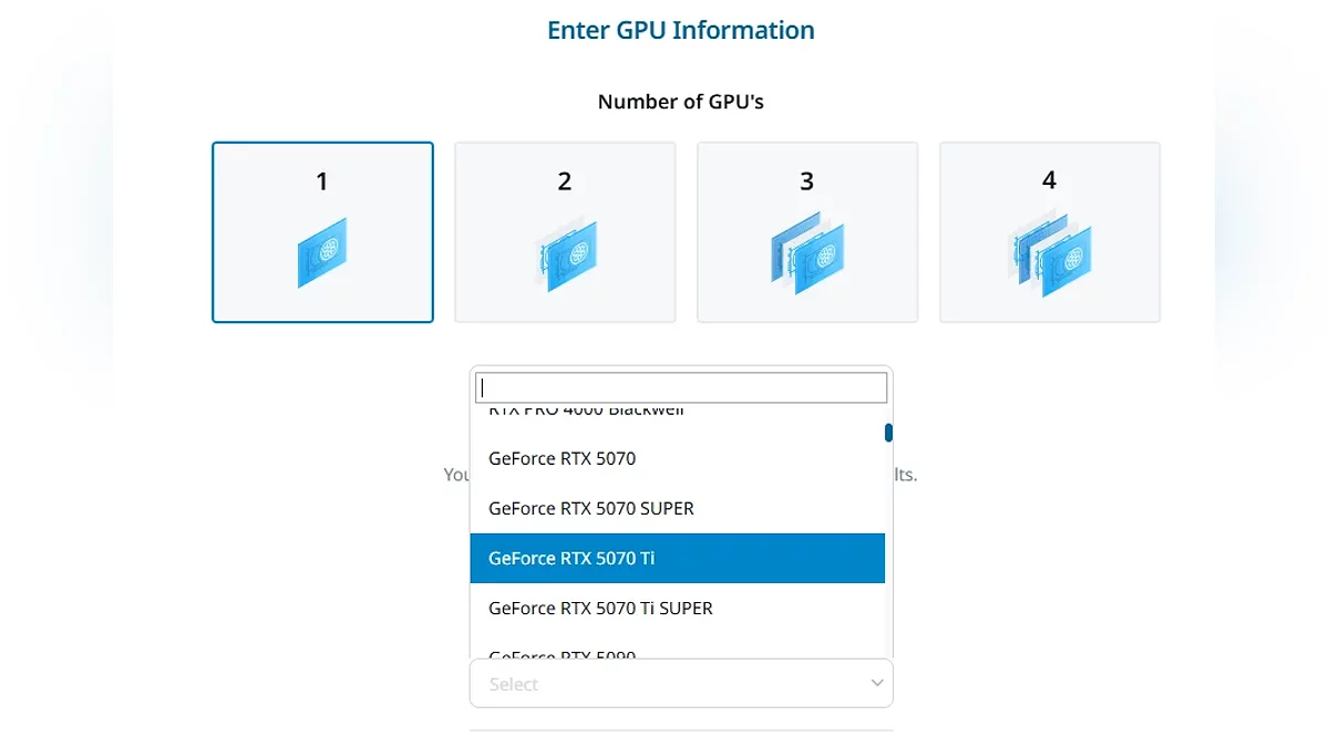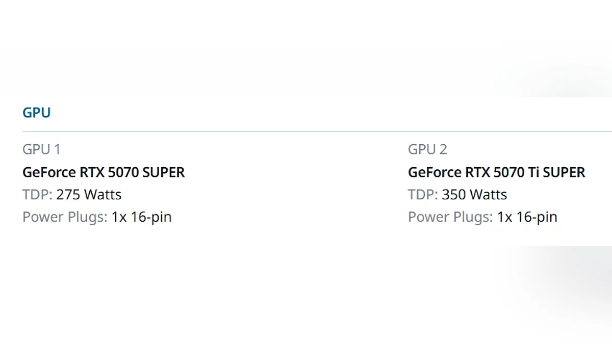 Как сообщает Videocardz, в официальном калькуляторе блоков питания Seasonic появились пока неанонсированные GeForce RTX 5070 Super и RTX 5070 Ti Super. Они оказались в выпадающем списке при выборе видеокарты, что может указывать на существование серии «Super».