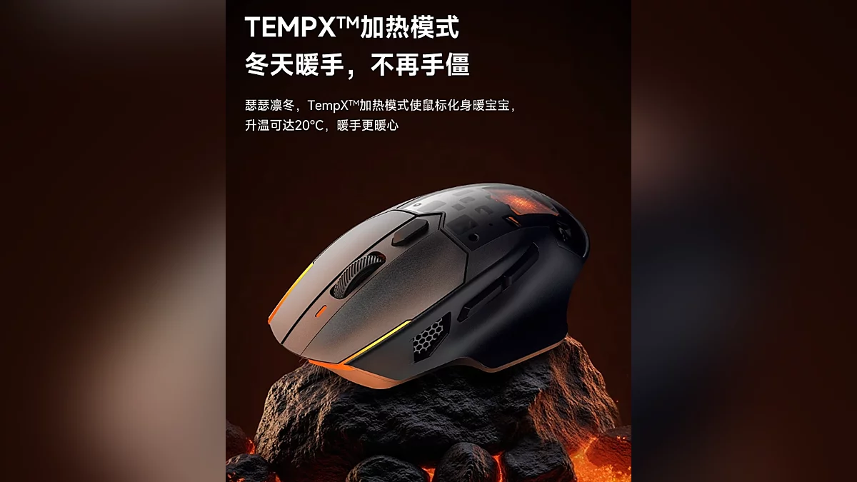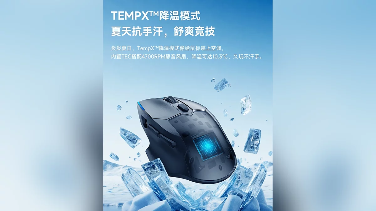 Модель оснащена фирменной технологией TempX, способной как нагревать корпус до +20°C, так и охлаждать его на 10,3°C относительно комнатной температуры. За охлаждение отвечает TEC-модуль и тихий вентилятор на 4700 об/мин — по сути, в мышь встроен собственный мини-кондиционер.