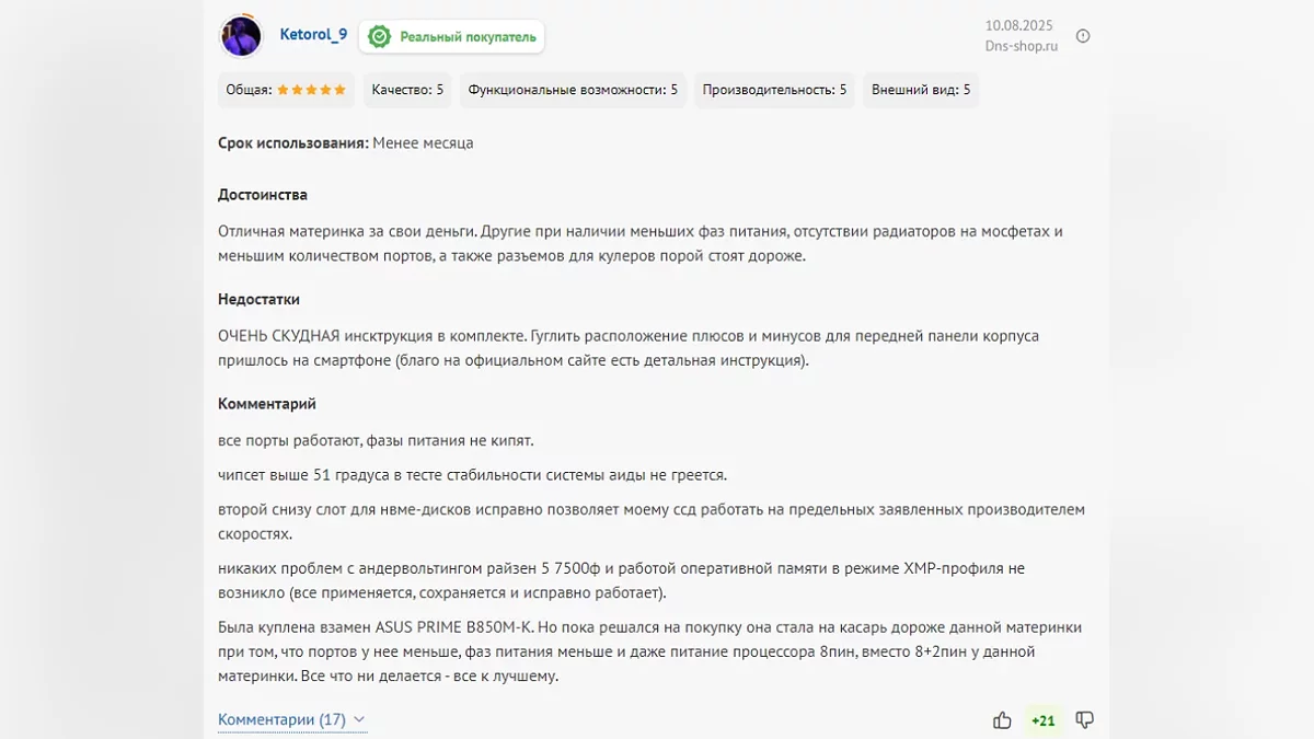 - Меньше запас на будущее в произвольном экстремальном разгоне или под очень тяжёлые нагрузки/многопоточность, чем у плат высокого класса (X870 и т.п.).