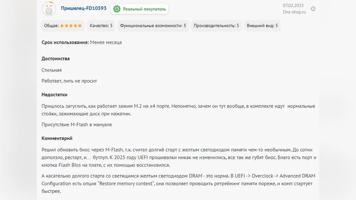 - Возможны сложности с совместимостью «из коробки». У некоторых пользователей встречаются проблемы с POST/DRAM (планки памяти или процессор могут не стартовать до обновления BIOS);