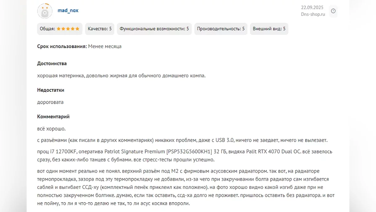 - Требуется хорошее охлаждение корпуса и VRM, особенно при мощных CPU и под нагрузкой, чтобы избежать перегрева и падения производительности;