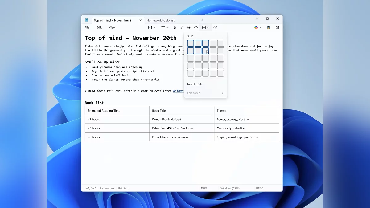 «Блокнот» в Windows 11 получил поддержку таблиц — Microsoft кардинально обновила приложение