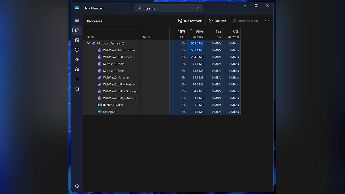 По данным издания Windows Latest, в Windows 11 стремительно растёт проблема с потреблением оперативной памяти — и виноваты в этом не игры или тяжёлые программы, а обычные коммуникационные приложения.
