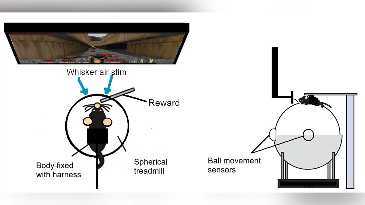 Авторы проекта построили полноценную VR-установку, позволяющую крысам играть в DOOM. Проект был собран с нуля и включает беговой шар с отслеживанием движения, панорамный VR-дисплей, физический «курок» для стрельбы и систему вознаграждений с подачей сахарной воды. Примечательно, что все аппаратные и программные компоненты выложены в открытый доступ — от 3D-моделей и схем до прошивок и управляющего кода.