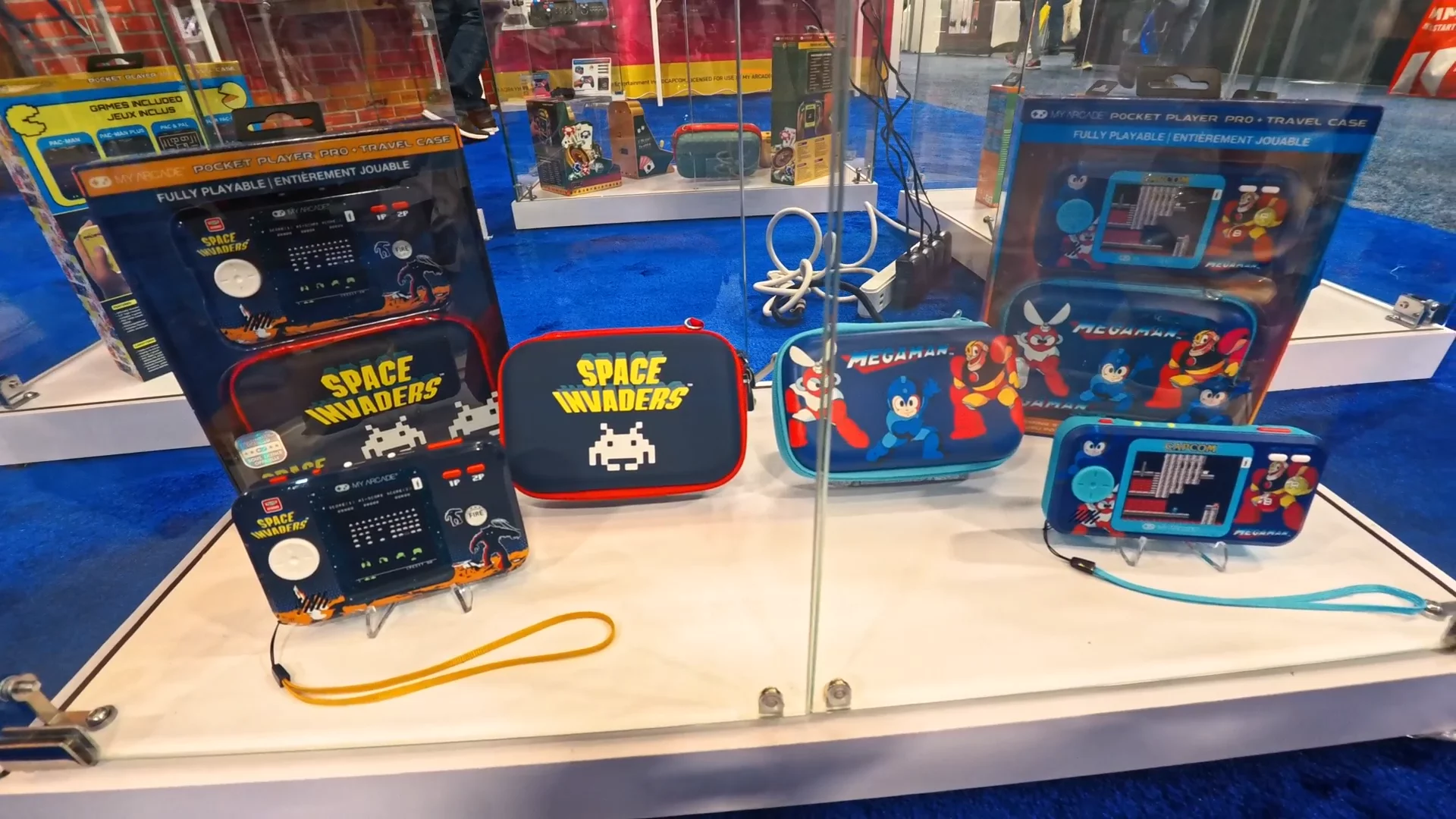 В завершение он показал линейку Pocket Player Pro, представленную по нескольким лицензиям, включая Pac-Man, Tetris, Atari, Street Fighter, Space Invaders и Mega Man. Эти устройства оснащены 2,75-дюймовым экраном и комплектуются лицензированными чехлами, кабелями и защитными плёнками.