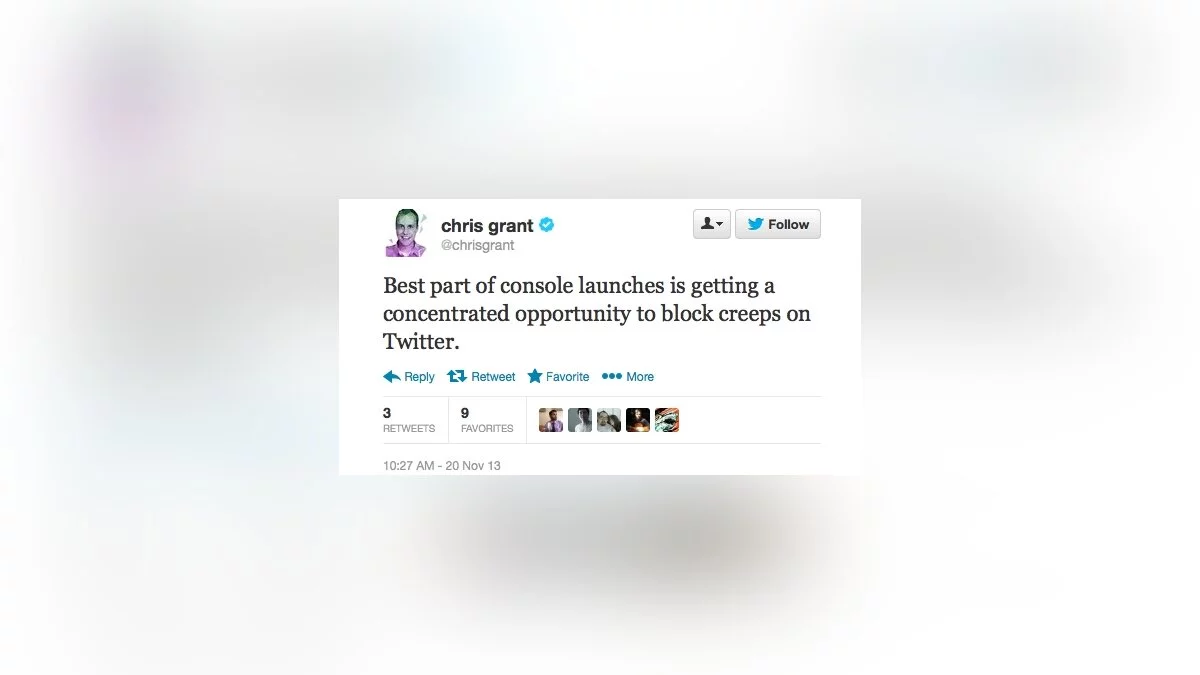 Во время трансляции редактор сайта Крис Грант (Chris Grant) старался как можно больше нахваливать Xbox One и говорить о ее преимуществах перед PS4. И одна из таких хвалебных речей сыграла с господином Грантом весьма злую шутку.