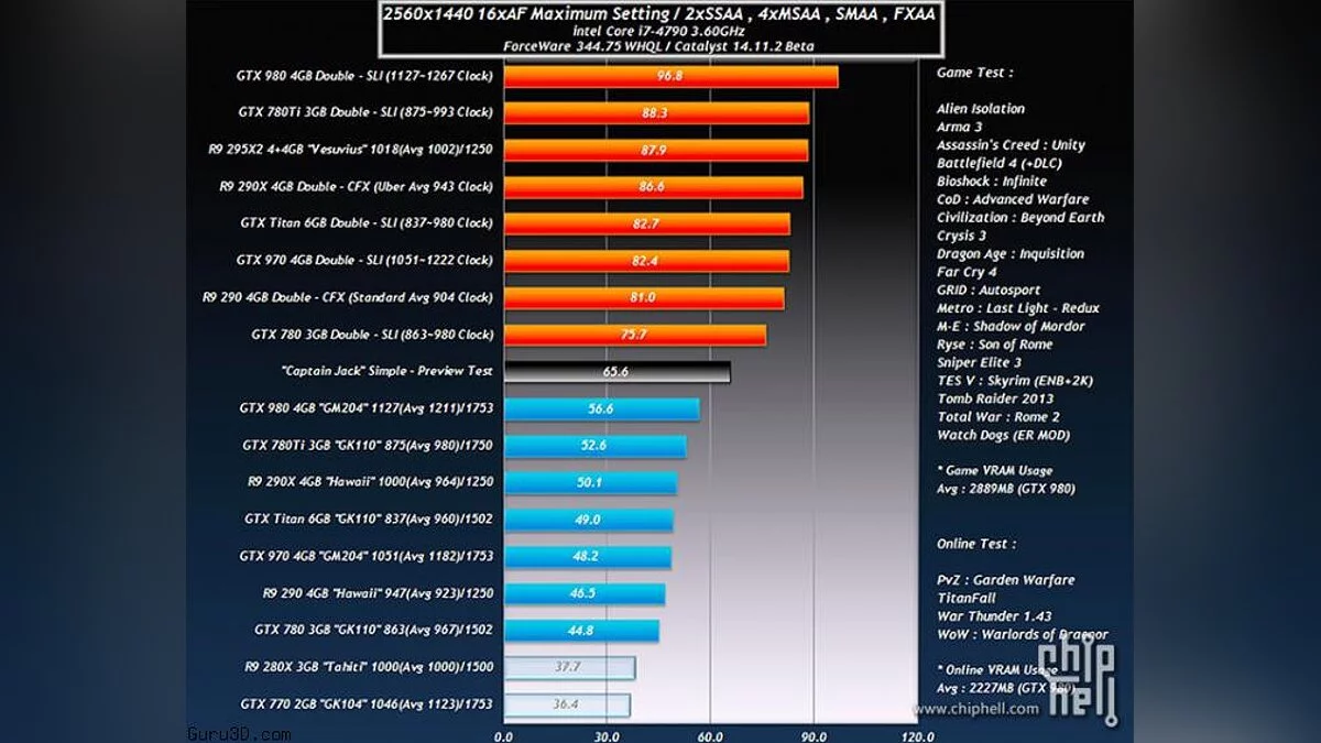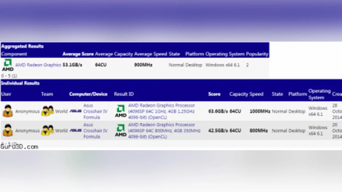 Характеристики новых видеокарт AMD были найдены в рейтинговой таблице ПО SiSoft Sandra. Первая моделька (предположительно Radeon R9 390) будет содержать 4096 шейдерных процессоров и 64 вычислительных блока, ядро будет работать на 800 МГц, а общий объём памяти составит 4 ГБ.