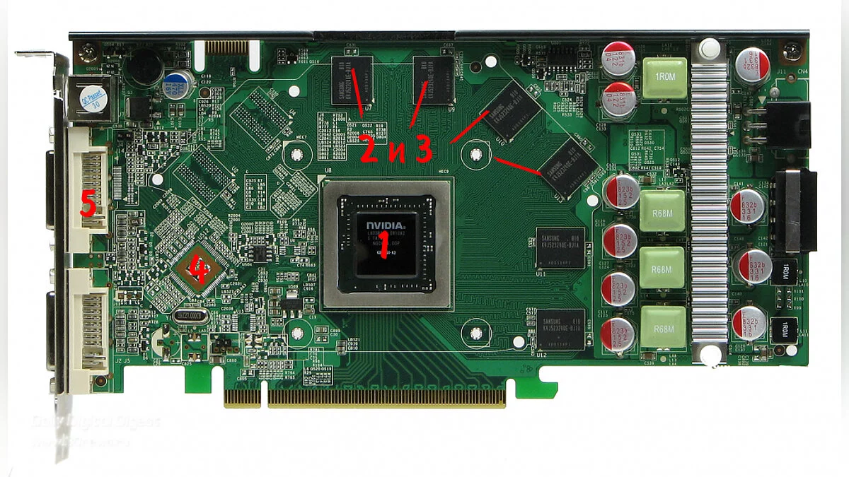 4. Видеоконтроллер. Если процессор обрабатывает информацию, то контроллер ее формирует в изображение. Обработкой запросов графического процессора иногда занимаются сразу несколько таких контролеров (в последнее время их редко меньше двух штук на видеокарте)
