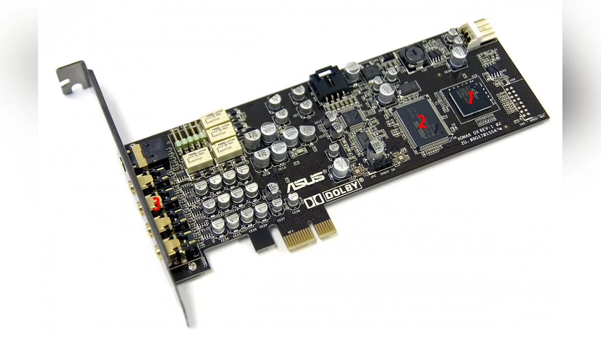 2. Звуковая-ОЗУ. Память, как и в видеокарте, которая содержит в себе базовую информацию для ускоренной обработки поступающих на карту данных. Естественно, что размер ее небольшой, а поэтому карта может обращаться к процессору материнской платы за доступом к основному, системному ОЗУ.