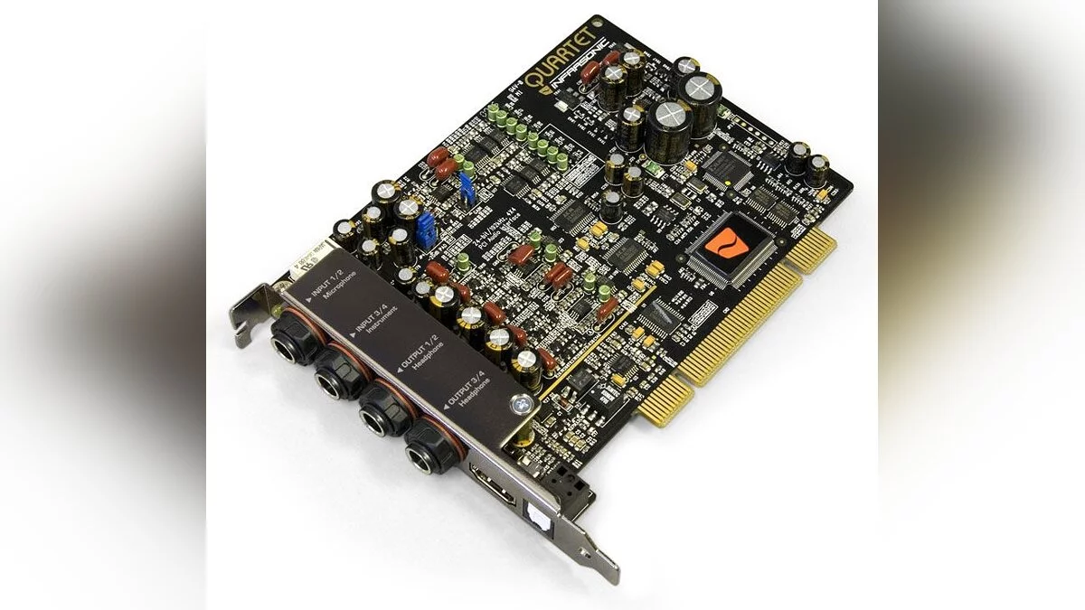 Раз уж изображение попадает на экран монитора с помощью видеокарты, то что происходит со звуком? То же самое, только для этого уже используется звуковая карта. В отличие от многих других частей компьютера, которые имеют свои слэнговые названия, я так и не смог вспомнить, называют ли или нет звуковую карту «звуковухой», к примеру. Впрочем, это не так важно. Звуковая карта — это обязательная часть компьютера для тех, кто хочет слышать хоть что-нибудь. И не важно, используете вы колонки или наушники — все это ударяется именно в еще одну пластинку, забитую микросхемами и блоками.