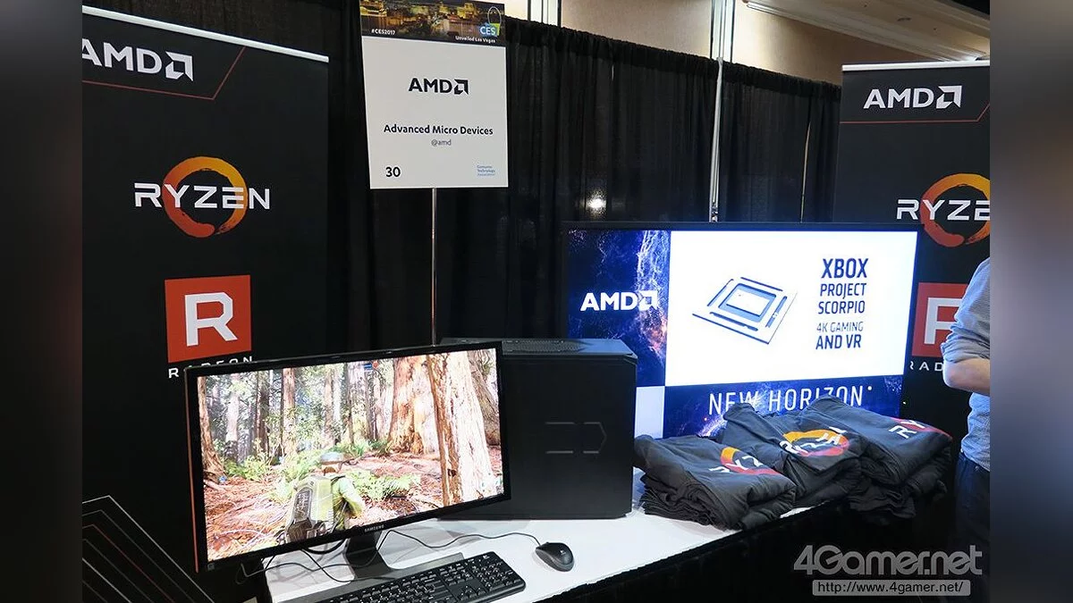 Несмотря на выход более мощной версии PS4 от Sony, Microsoft все еще никак не комментирует свой ответ — Xbox One Scorpio с пиковой производительностью 6 ТФлопс. Похоже, этому пришел конец, поскольку журналисты 4gamer сделали следующее интересной фото стенда AMD на CES 2017: