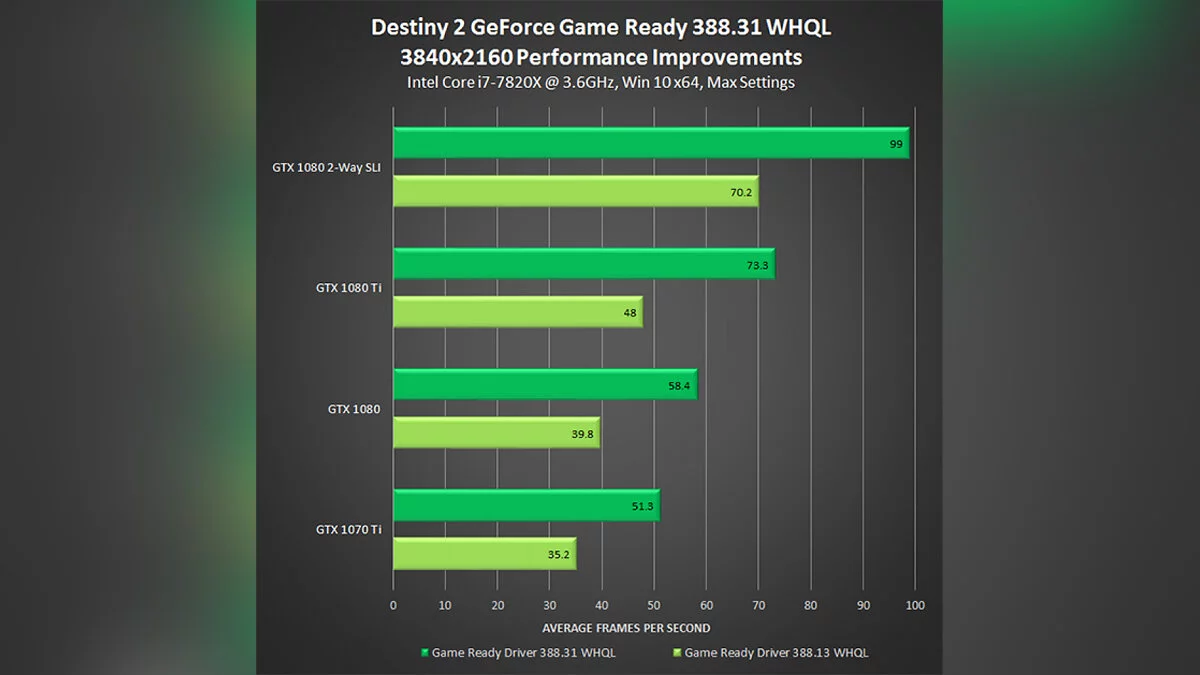 Nvidia выпустила новый драйвер GeForce 388.31, который улучшает производительность в новых Star Wars: Battlefront II и Injustice II, а также дают огромный прирост в Destiny 2.