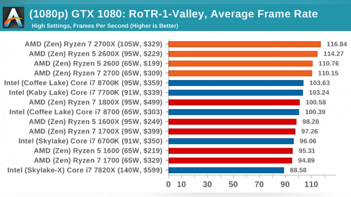 Проведённые тесты показывают, что новейшие процессоры от AMD Ryzen второго поколения превосходят аналогичные процессоры от Intel.